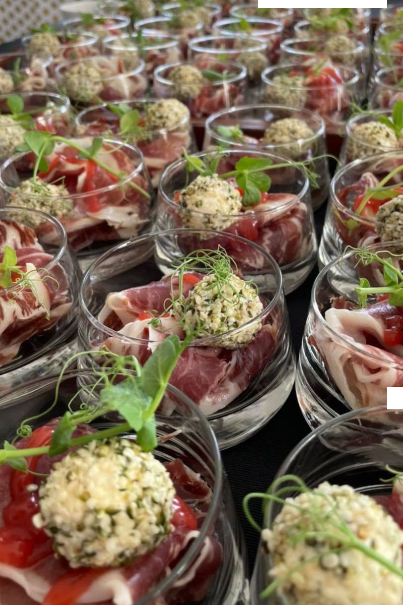 - Pani-Puri balletje buffelmozzarella met tomatencompote en pesto